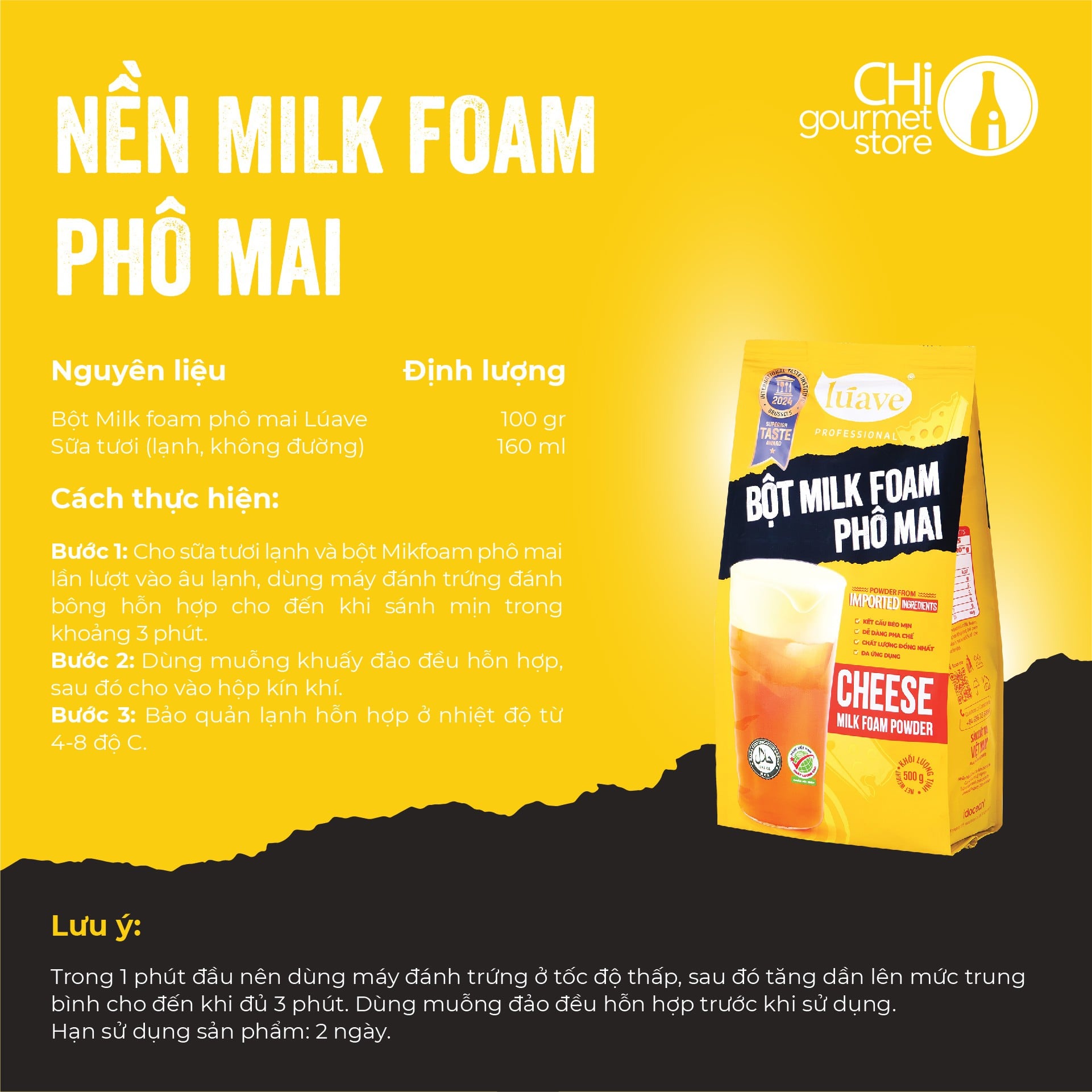 - Bột Milk Foam Phô Mai Lúave: 100 g