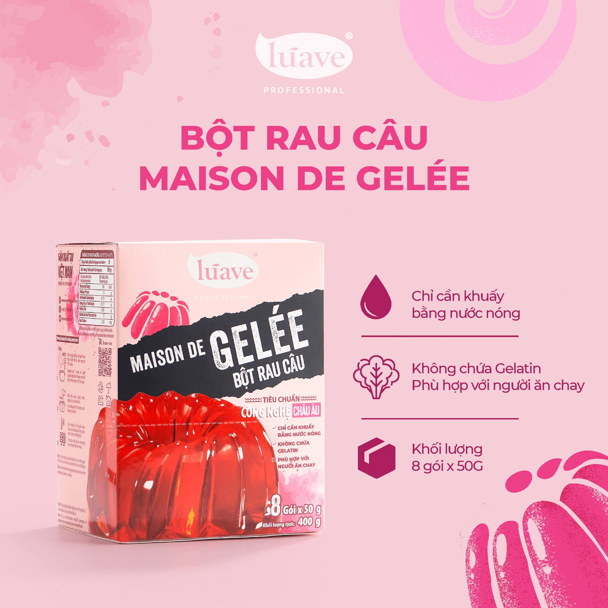 Bột Rau Câu Maison De Gelée Lúave là giải pháp tổng hợp ưu điểm của rau câu dẻo, giúp tối ưu hóa cả về chất lượng, an toàn và thời gian chế biến.