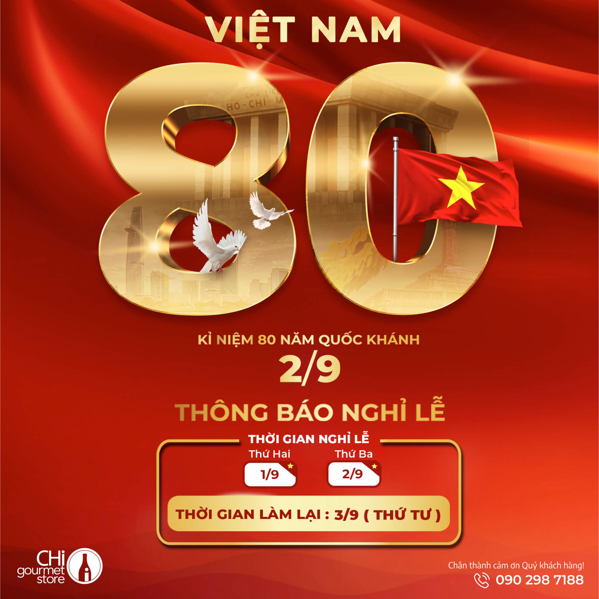 CHi Gourmet Store xin thông báo đến Quý Khách hàng – Quý Đối tác lịch nghi Lễ ngày Quốc khánh như sau: