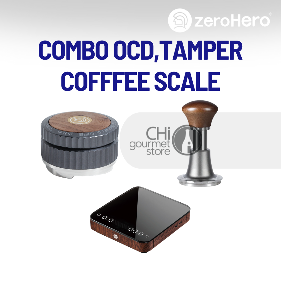 Combo Dụng Cụ Pha Chế OCD, Tamper Ripple Base Grey & Cân Điện Tử Coffee Scale Walnut zeroHero