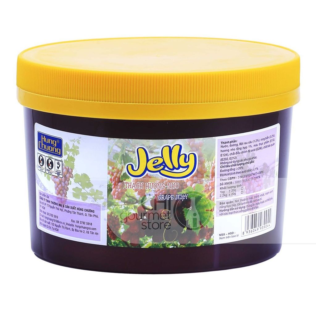 THÀNH PHẦN: Nước, đường, bột rau câu (1.2%), rong biển (0.2%), hương nho tổng hợp 1%, phẩm màu (E129, E110), chất điều chỉnh độ acid (E296) chất bảo quản (E202, E212)